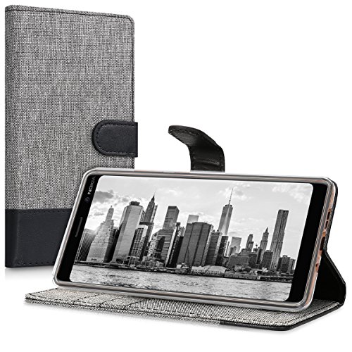 Kwmobile Custodia compatibile con Nokia 7 Plus - Cover a portafoglio porta carte tessuto simil pelle stand - Case magnetica