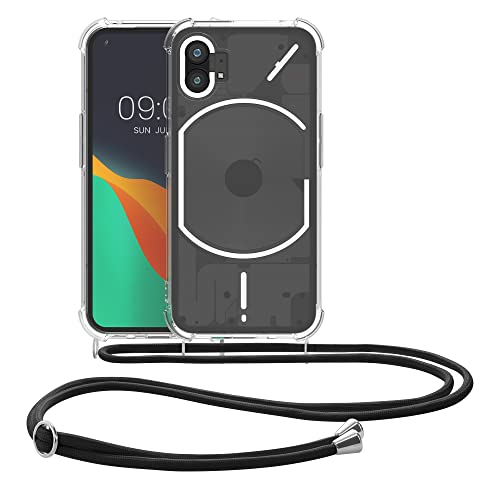 Kwmobile Custodia Compatibile con Nothing Phone (1) Cover - Back Case in Silicone TPU - Protezione Smartphone con Cordino - trasparente/nero