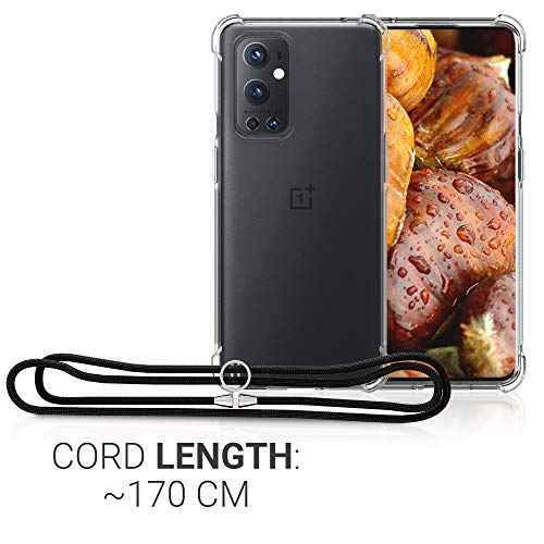 Kwmobile Custodia Compatibile con OnePlus 9 Pro Cover - Back Case in Silicone TPU - Protezione Smartphone con Cordino - nero/trasparente