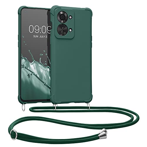 Kwmobile Custodia Compatibile con OnePlus Nord 2T 5G Cover - Back Case in Silicone TPU - Protezione Smartphone con Cordino - Verde Scuro