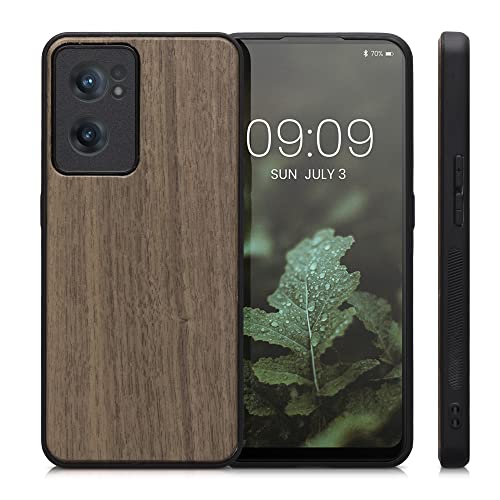 Kwmobile Custodia Compatibile con OnePlus Nord CE 2 5G Cover - Protezione in Legno per Smartphone - Back Case con Bumper in Silicone TPU - Marrone Scuro