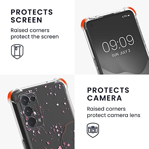 Kwmobile Custodia Compatibile con Oppo Find X3 Lite Cover - Back Case in Silicone TPU - Protezione Smartphone con Cordino - rosa/marrone scuro/trasparente