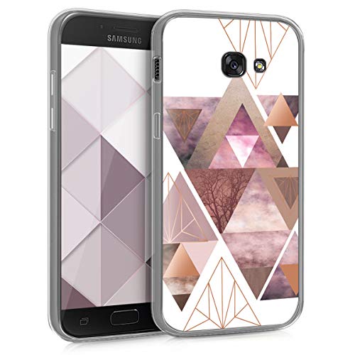 Kwmobile Custodia Compatibile con Samsung Galaxy A5 (2017) - Cover in Silicone TPU Trasparente - Back Case Fantasia Triangolare Rosa/Oro Rosa/Bianco