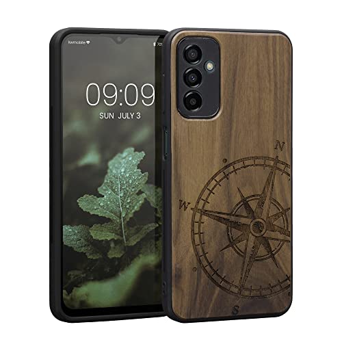 Kwmobile Custodia Compatibile con Samsung Galaxy M23 5G Cover - Back Case in Legno con Bumper in Silicone TPU - Bussola vintage marrone scuro