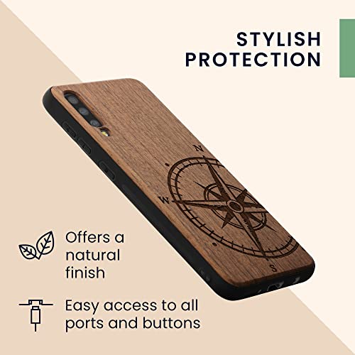 Kwmobile Custodia Compatibile con Samsung Galaxy A50 Cover - Back Case in Legno con Bumper in Silicone TPU - Bussola vintage marrone scuro