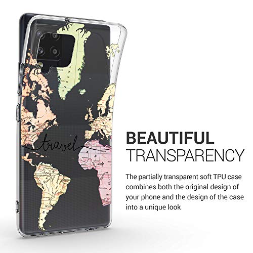 Kwmobile Custodia Compatibile con Samsung Galaxy A42 5G - Cover Silicone TPU - Protezione Back Case - Mappa del mondo nero/multicolore/trasparente
