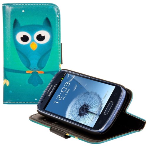 Kwmobile Custodia Compatibile con Samsung Galaxy S3 Mini i8190 - Cover Portafoglio Pelle Sintetica con Chiusura Magnetica - Porta Carte Civetta notturna