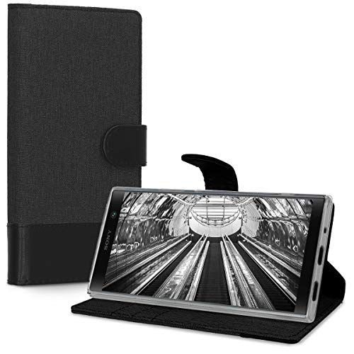Kwmobile Custodia Compatibile con Sony Xperia XA2 Plus - Cover a Portafoglio Porta Carte Tessuto Simil Pelle Stand - Case Magnetica