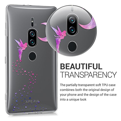Kwmobile Custodia Compatibile con Sony Xperia XZ2 Premium - Cover Silicone TPU - Protezione Back Case - Fatina fucsia/viola/trasparente