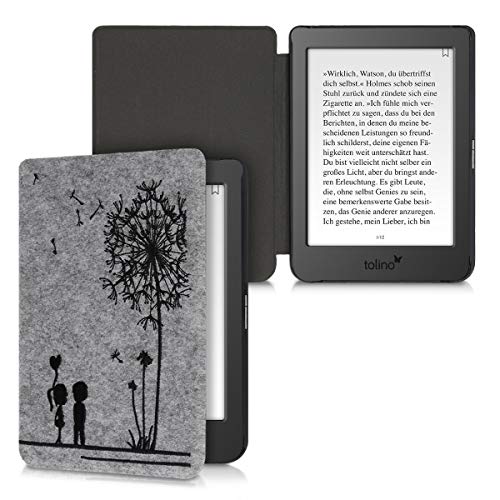 Kwmobile Custodia Compatibile con Tolino Page 2 - Cover a Libro per eReader - Protezione in Feltro - Flip Case - Amore Nero/Grigio Chiaro