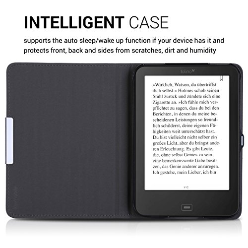 Kwmobile Custodia compatibile con Tolino Vision 1/2 / 3/4 HD - Cover in simil pelle magnetica Flip Case per eReader blu/viola/bianco