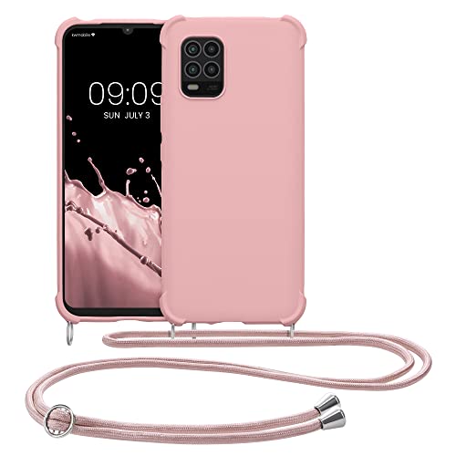 Kwmobile Custodia Compatibile con Xiaomi Mi 10 Lite (5G) Cover - Back Case in Silicone TPU - Protezione Smartphone con Cordino - madre perla