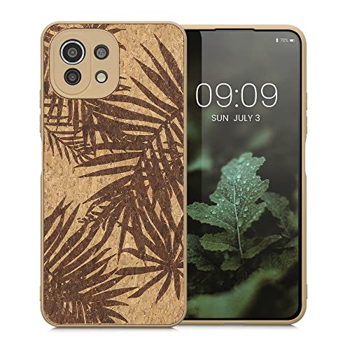 Kwmobile Custodia compatibile con Xiaomi 11 Lite (5G) NE/Mi 11 Lite (5G) - Cover in Sughero - Bumper Antiurto in Silicone TPU Gommato - Protezione Palme