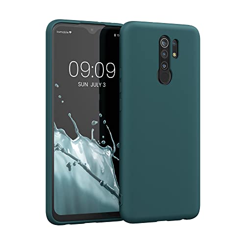 Kwmobile Custodia Compatibile con Xiaomi Redmi 9 Cover - Back Case per Smartphone in Silicone TPU - Protezione Gommata - petrolio matt