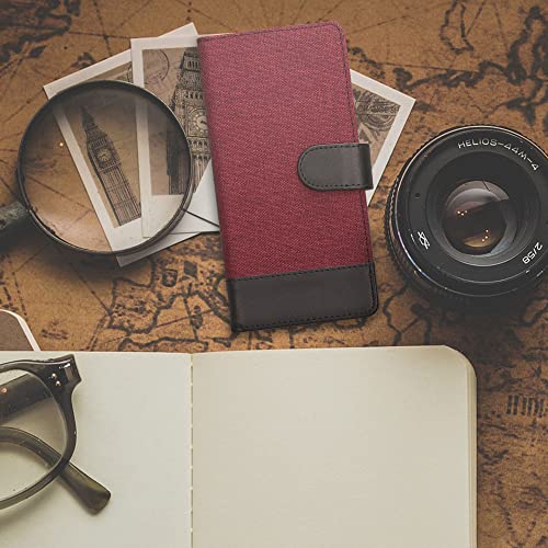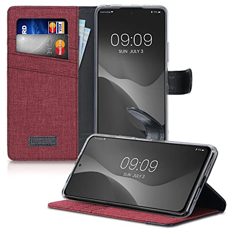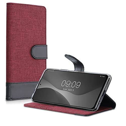 Kwmobile Custodia Compatibile con Xiaomi Redmi Note 10 PRO Cover Portafoglio - Case Chiusura Magnetica Portacarte Tessuto Similpelle Rosso Scuro/Nero
