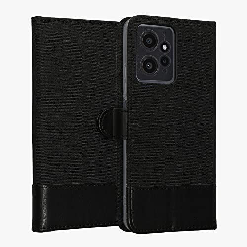 Kwmobile Custodia Compatibile con Xiaomi Redmi Note 12 (4G) Cover Portafoglio - Case Chiusura Magnetica Portacarte Tessuto Similpelle Antracite/Nero