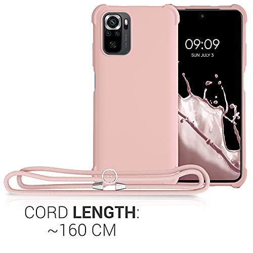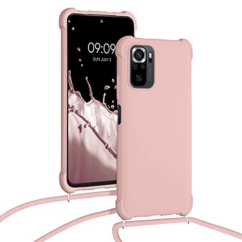 Kwmobile Custodia Compatibile con Xiaomi Redmi Note 10 / Note 10S Cover - Back Case in Silicone TPU - Protezione Smartphone con Cordino - madre perla