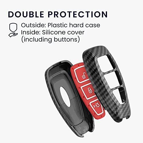 Kwmobile Custodia Copri Chiave Compatibile con Ford con 3 tasti Keyless Go - Cover Coprichiave Telecomando Auto in Plastica e Silicone - Effetto Carbonio