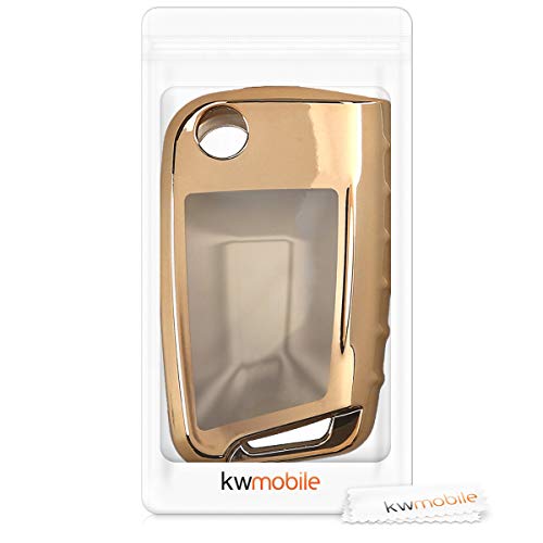 Kwmobile Custodia Copri-Chiave Compatibile con VW Golf 7 MK7 con 3 Tasti - Cover Chiavi Auto in Silicone TPU - Guscio Elastico Protezione Oro Brillante