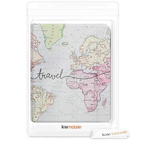 Kwmobile Custodia eReader Compatibile con Kobo Libra H2O Cover - eBook Reader Flip Case - nero/multicolore - Mappa del mondo