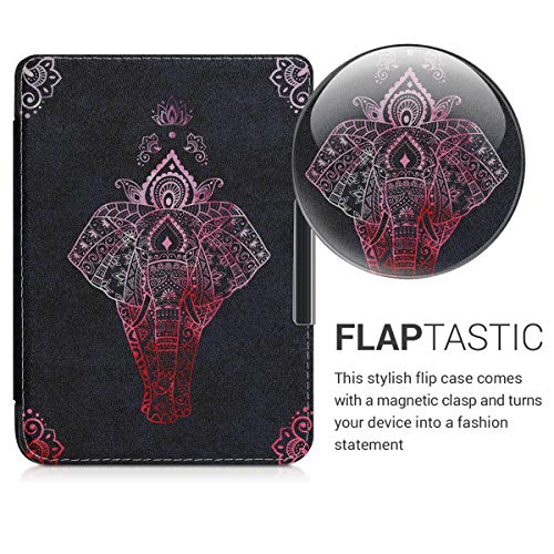 Kwmobile Custodia eReader Compatibile con Tolino Shine 3 Cover - eBook Reader Flip Case - fucsia/antracite - Elefante etnico