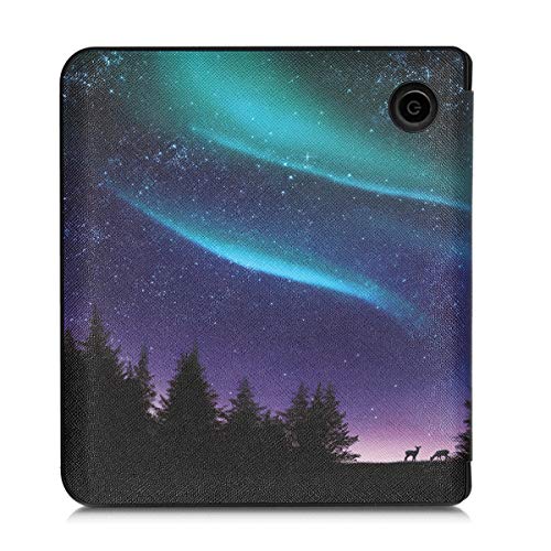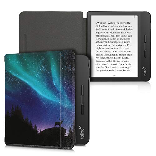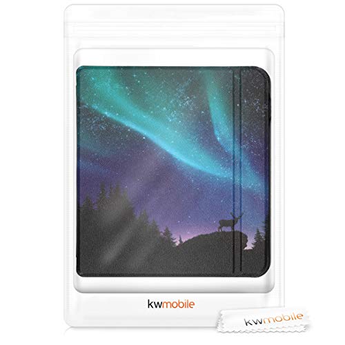 Kwmobile Custodia eReader Compatibile con Tolino Vision 5 Cover - eBook Reader Flip Case - turchese/blu/nero - Aurora boreale