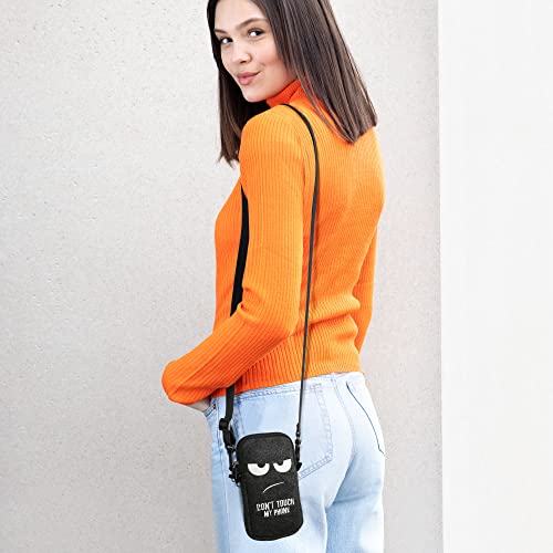 Kwmobile Custodia in Feltro con Zip per Smartphone - Portacellulare a Tracolla - Porta Cellulare da Collo Universale - Cover Borsa Telefono - Don't Touch My Phone