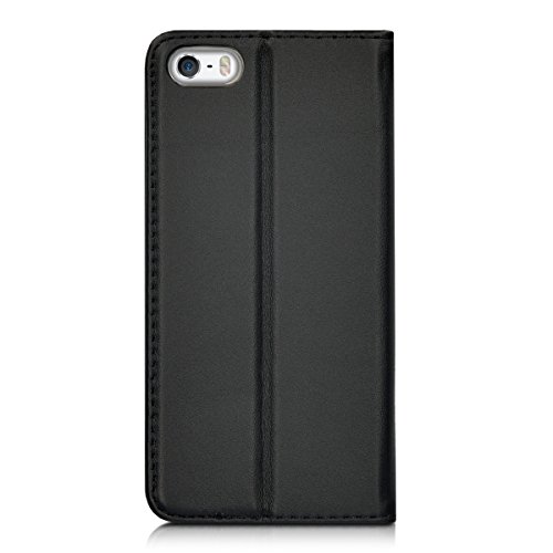 Kwmobile Custodia Flip Custodia di pelle compatibile con Apple iPhone SE (1.Gen 2016) / 5 / 5S con supporto - Custodia Case in nero