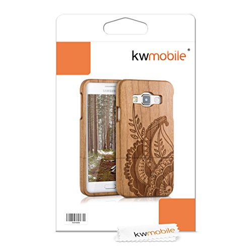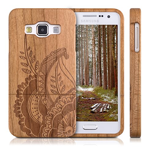 Kwmobile Custodia in legno per Samsung Galaxy A3 (2015) Cover legno naturale ciliegio Design composizione floreale - Case rigida per cellulare Design composizione floreale marrone