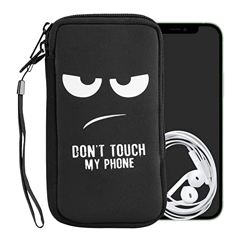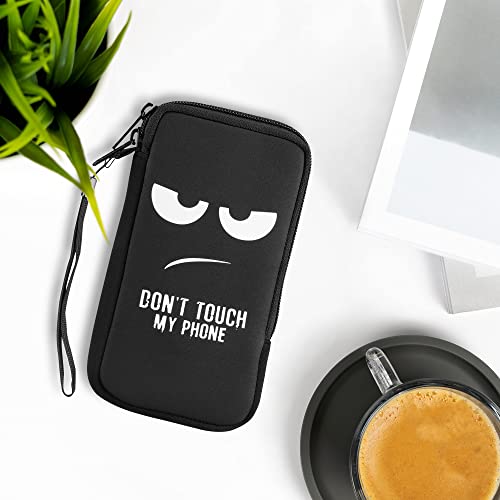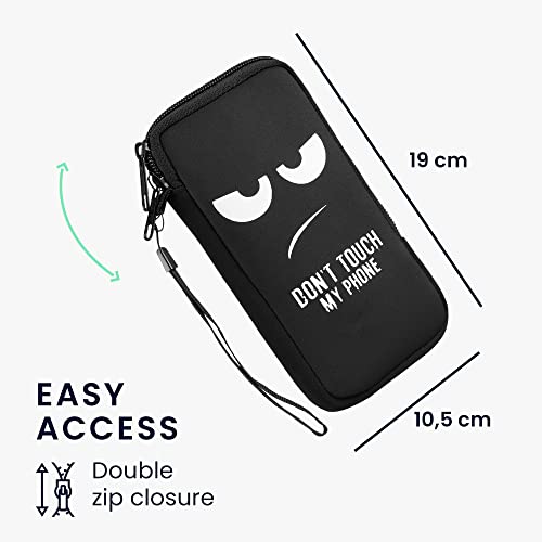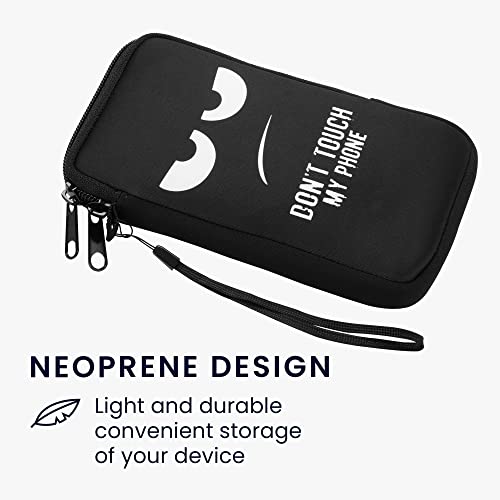 Kwmobile Custodia in neoprene con zip per smartphone XL - 6,7/6,8" - Astuccio portacellulare a sacchetto con cerniera - Borsa verticale - Don't touch my phone bianco/nero