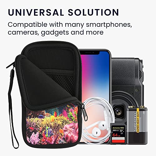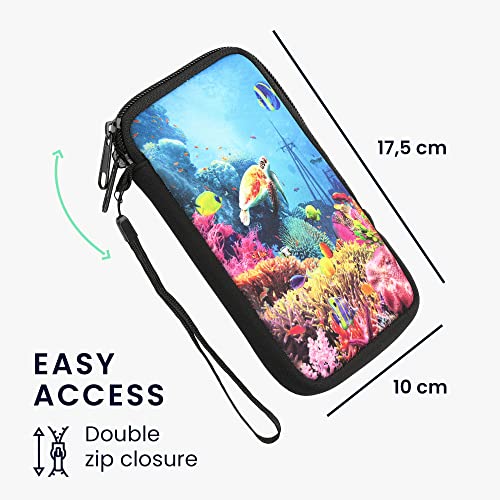 Kwmobile Custodia in neoprene con zip per smartphone L - 6,5" - Astuccio portacellulare a sacchetto con cerniera - Borsa verticale - Coral Reef multicolore