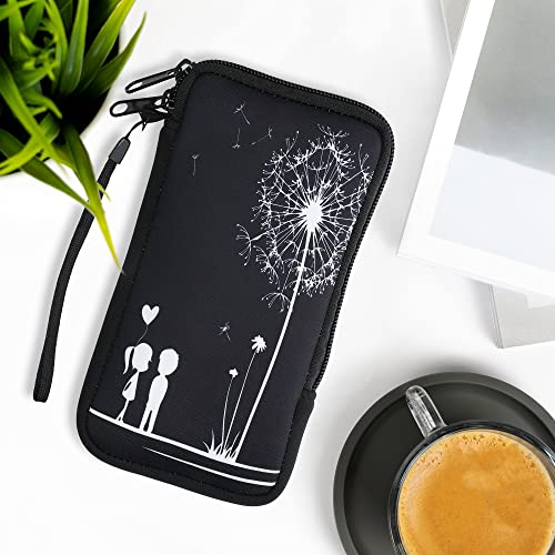 Kwmobile Custodia in neoprene con zip per smartphone XL - 6,7/6,8" - Astuccio portacellulare a sacchetto con cerniera - Borsa verticale - Amore bianco/nero
