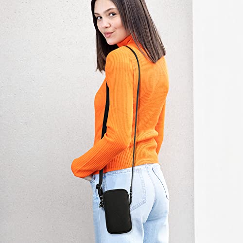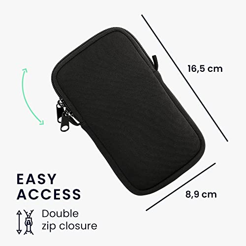 Kwmobile Custodia in Neoprene con Zip per Smartphone - Portacellulare a Tracolla - Porta Cellulare da Collo Universale - Borsa Cover Telefono nero