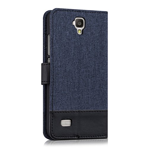 Kwmobile Custodia Portafoglio per Huawei Y5 - Cover in Simil Pelle a Libro Flip Case con Porta Carte Funzione appoggio Blu Scuro Nero