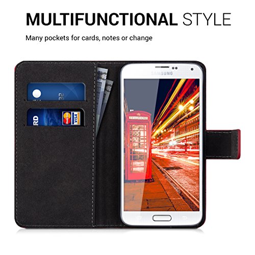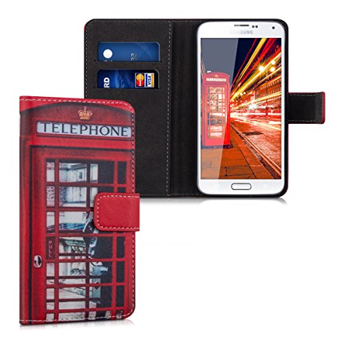 Kwmobile Custodia portafoglio per Samsung Galaxy S5 / S5 Neo / S5 LTE+ / S5 Duos - Cover a libro in simil pelle Design telefono Londra Flip Case con porta carte funzione appoggio rosso nero bianco