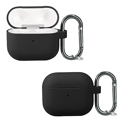 Kwmobile Custodia Silicone Cuffie Compatibile con Apple AirPods 3 Cover - Custodia Porta Auricolari con Moschettone - Case Nero