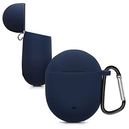 Kwmobile Custodia Silicone Cuffie Compatibile con Google Pixel Buds 2 (2020) Cover - Custodia Porta Auricolari con Moschettone - Case blu scuro