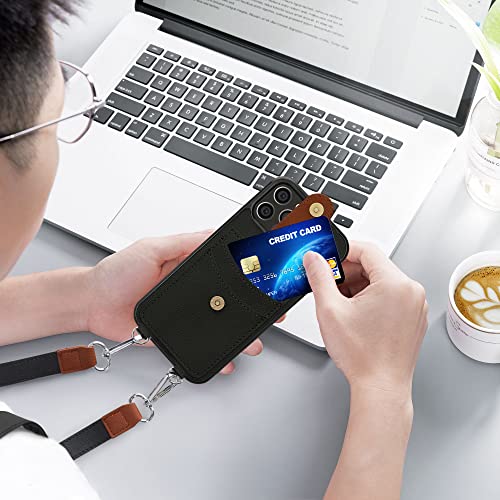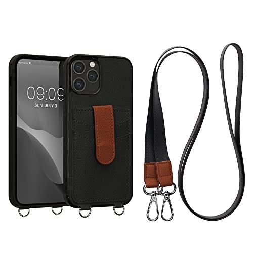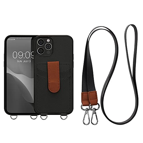 Kwmobile Custodia Tracolla Compatibile con Apple iPhone 12 / iPhone 12 Pro - Cover Similpelle nero/marrone - Copertina Portacarte Back Case con Cordino