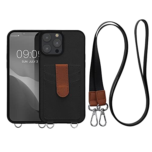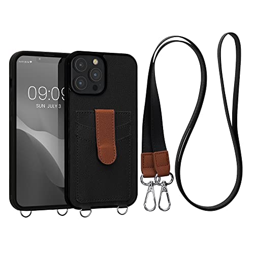 Kwmobile Custodia Tracolla Compatibile con Apple iPhone 13 Pro Max - Cover Similpelle nero/marrone - Copertina Portacarte Back Case con Cordino