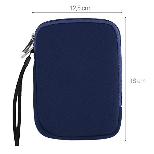Kwmobile Custodia Universale per eReader - Copertina in Neoprene blu scuro con Chiusura a Zip - Misura 17 x 12 x 2 cm - Astuccio portatablet