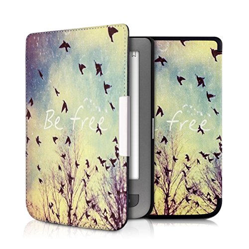 Kwmobile Elegante borsa di ecopelle per il Pocketbook Touch Lux 3 / Touch Lux 2 in Design Be Free nero blu bianco