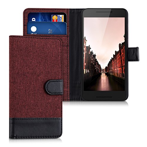 Kwmobile LG Google Nexus 5X Custodia Portafoglio - Cover Porta Carte Tessuto Simil Pelle Stand per LG Google Nexus 5X - Case Magnetica
