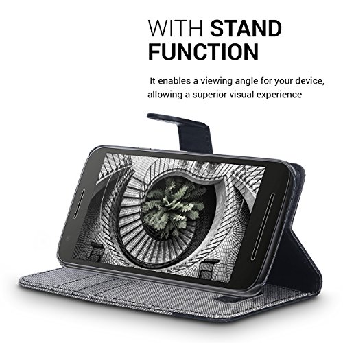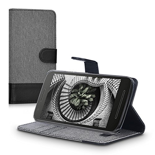 Kwmobile Motorola Moto E3 Custodia Portafoglio - Cover Porta Carte Tessuto Simil Pelle Stand per Motorola Moto E3 - Case Magnetica