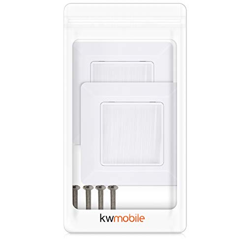 Kwmobile Placca Passa-cavi - 2x Coperture a Spazzola per Passaggio Fili Elettrici - Cornice Copertura per Fori Pareti e Scrivania - Passa-cavo Bianco