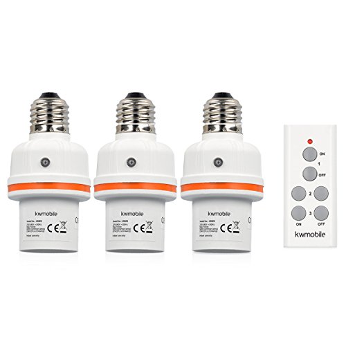 Kwmobile kit portalampada E27 con telecomando - set di 3 basi per lampadine LED e27 - attacco lampade eco-friendly telecomandato distanza max. 30m