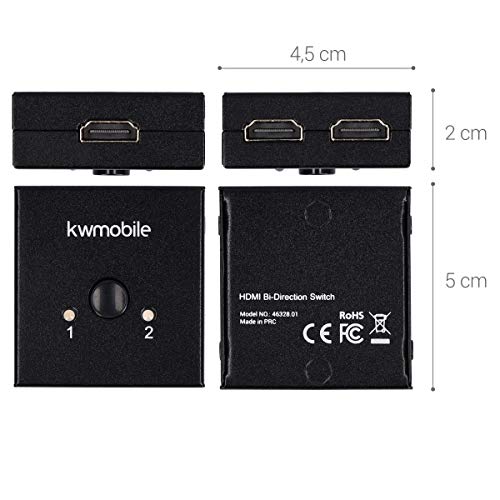 Kwmobile Splitter HDMI 4k Switch - HDCP 2.2 HDMI 2.0 commutatore biredizionale per TV PC PS4 monitor 480p 576p 720p 1080p 4k @ 60Hz 480i 576i 1080i