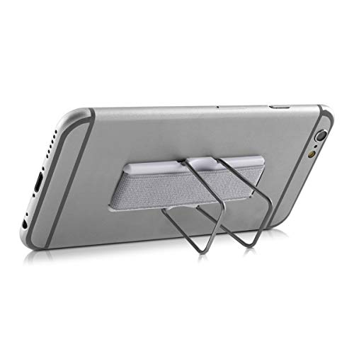 Kwmobile Supporto per Dita per Cellulare - Sostegno Adesivo con cavalletto e Fascetta Elastica - Impugnatura Stand Universale per Smartphone - Bianco