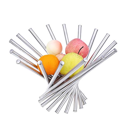 KWODE, cesto per frutta creativo, pieghevole, in acciaio inox, decorazione per cucina, per tavola, argentato, Acciaio inossidabile, Silver, A