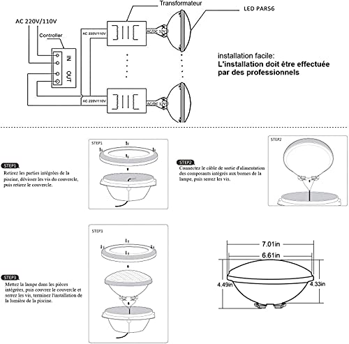 【Tensione di lavoro sicura】 Progettato con ingresso 12 V CA/CC, non causerà danni alle persone, goditi un ambiente sicuro per la piscina.Design a super risparmio energetico, con soli 40 W, puoi goderti 300 W di emissione luminosa. (In fase di installazione è necessario un trasformatore elettronico per 12v, non è incluso nella confezi