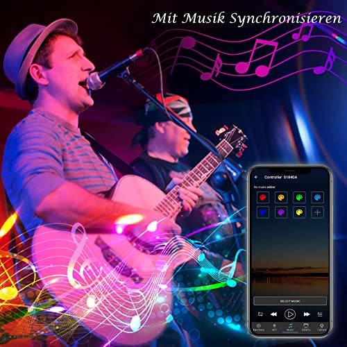 【Striscia LED musicale】 La striscia LED autoadesiva da 5 m ha un microfono integrato altamente sensibile. Puoi scegliere la modalità musica tramite telecomando o APP. Il microfono integrato nella scatola di controllo sincronizza l'illuminazione con tutta la musica proveniente da ogni altro altoparlante nella stanza.